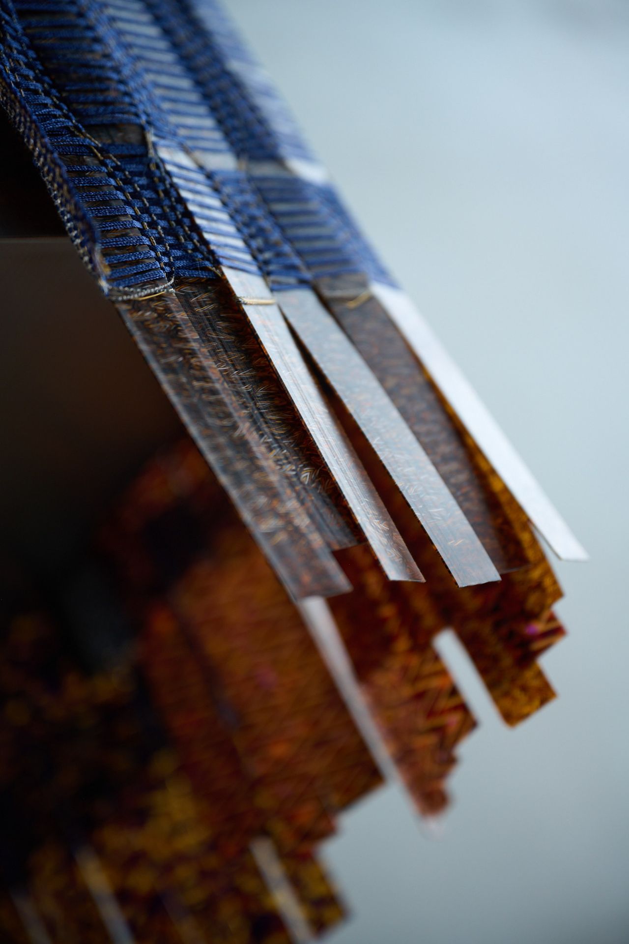 L’atelier sélectionne avec soin des matériaux qui dialoguent avec la lumière. Les coloris et nuances sont minutieusement travaillés, mettant en valeur des reflets changeants et des effets chatoyants. La rencontre entre la fluidité et la rigidité des matériaux donne naissance à des matières inédites, vibrantes et lumineuses.